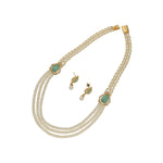 J Pearls Cherry 3 Lines Pearl NecklaceProduct code: JPAUG-23-046Brand: Sri Jagdamba PearlsSpecifications:Stone: freshwater pearls, color stonesQual...
