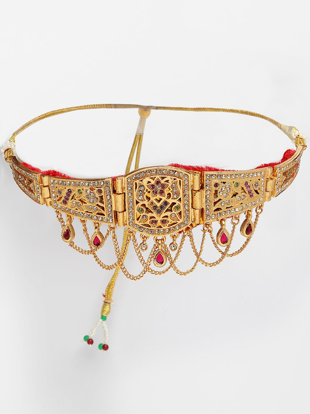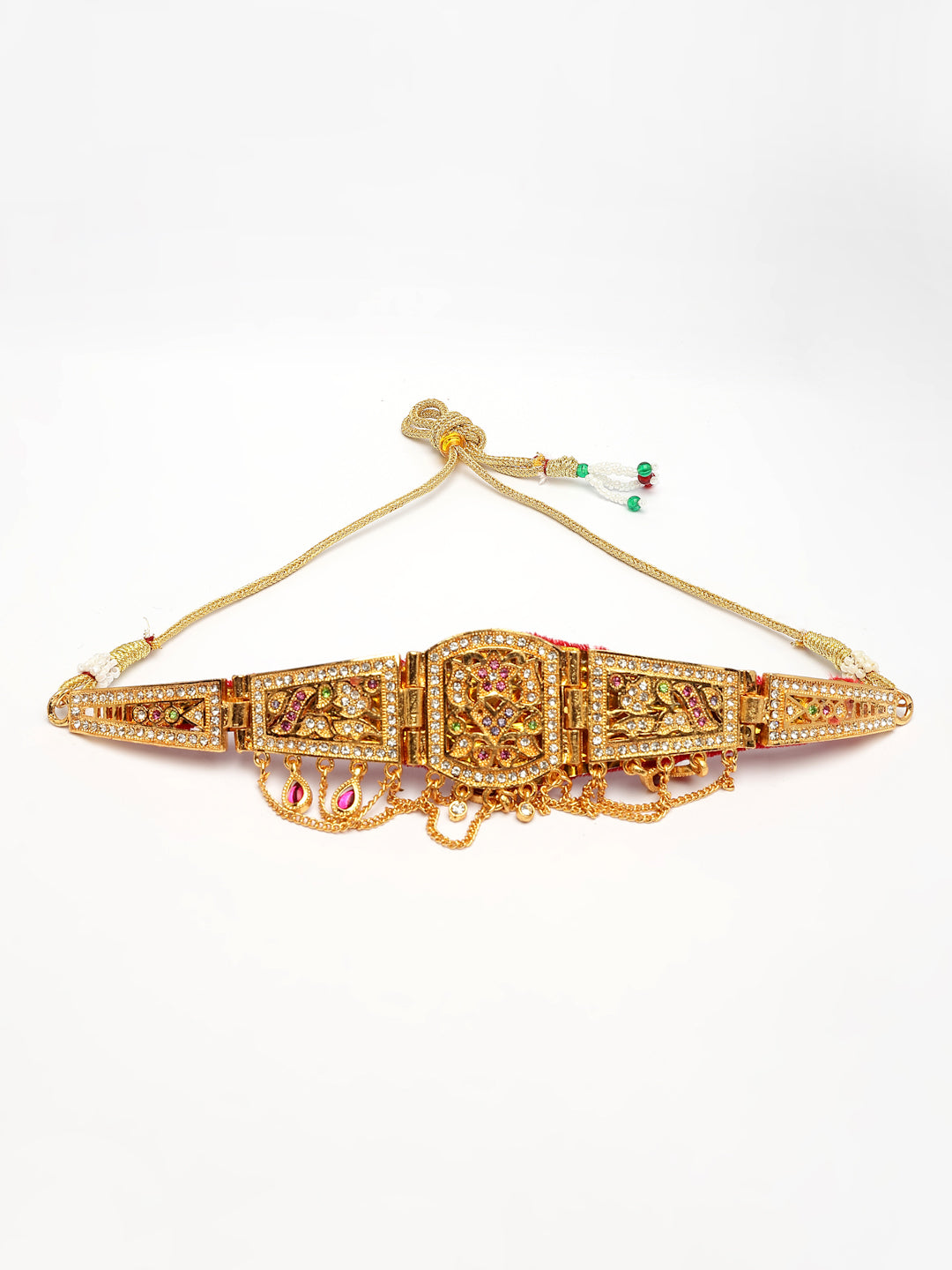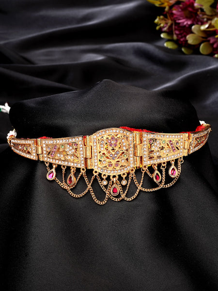 NVR Women's Gold-Polished Cubic Zirconia Stone Studded Rajputi Choker Necklace - Adjustable
