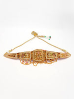 • Style Note: Add royal elegance to your look with the NVR Women's Gold-Plated Cubic Zirconia Stone Studded Rajputi Choker Necklace. Featuring a rich gold-plated finish and adorned with dazzling cubic zirconia stones, this choker captures the essence of traditional Rajputi jewelry with a modern twist. The intricate design and stone detailing create a captivating, luxurious piece that exudes opulence and grace. Ideal for weddings, festivals, and grand celebrations, this choker necklace adds a regal touch to your ethnic ensembles. A perfect blend of tradition and contemporary glamour, making it a must-have statement accessory.