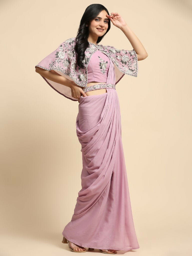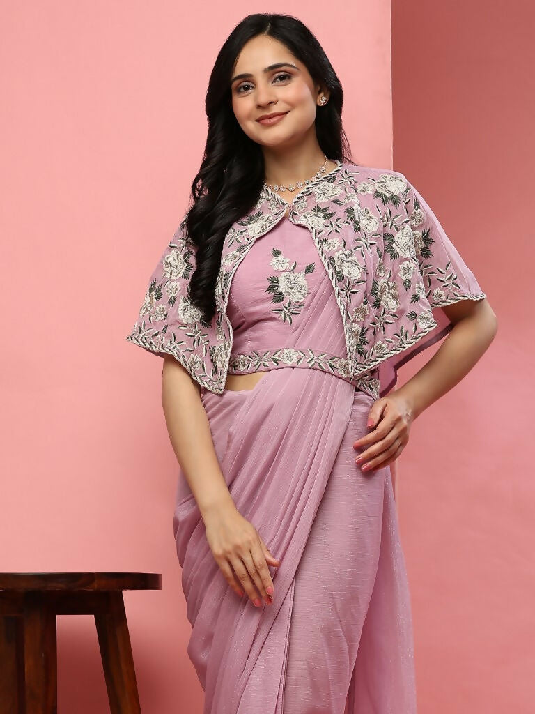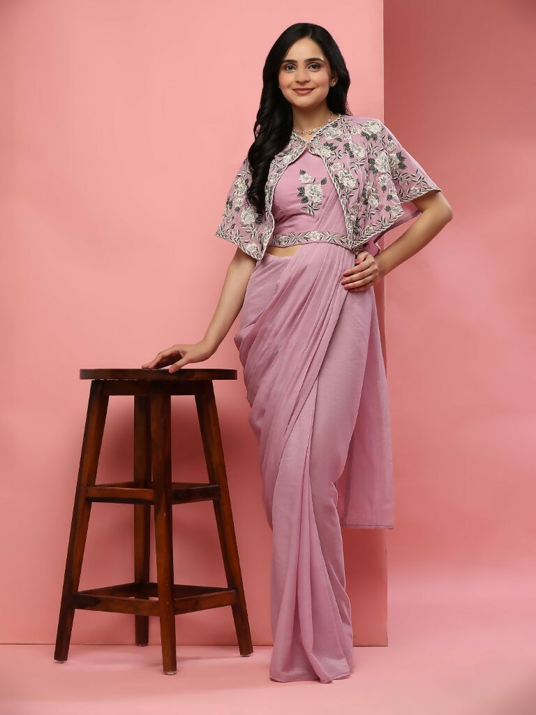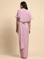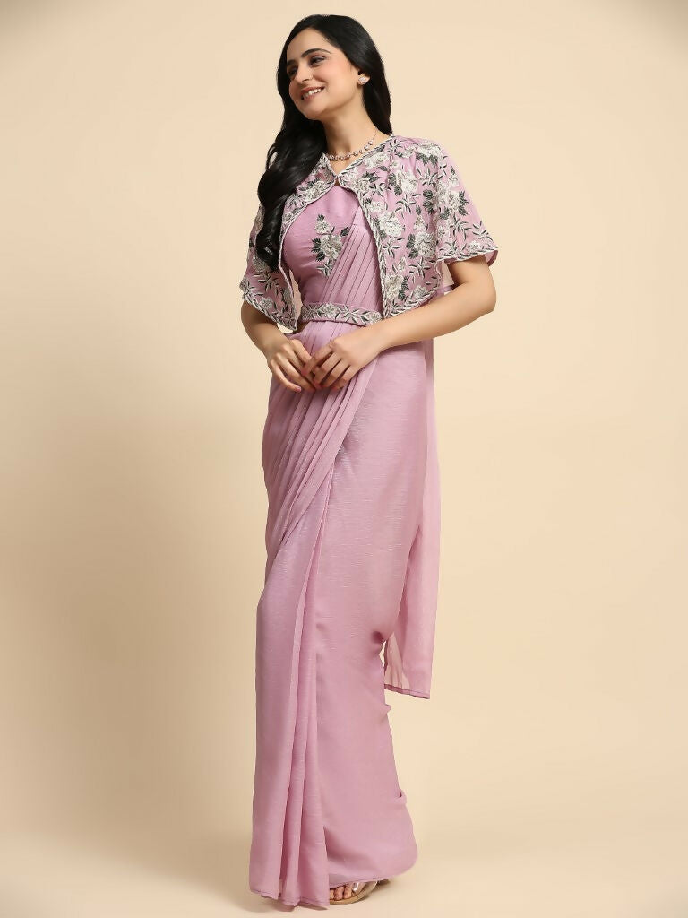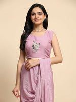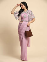 Pink Chiffon Solid Ready to wear Saree with stitched Blouse - Aayan