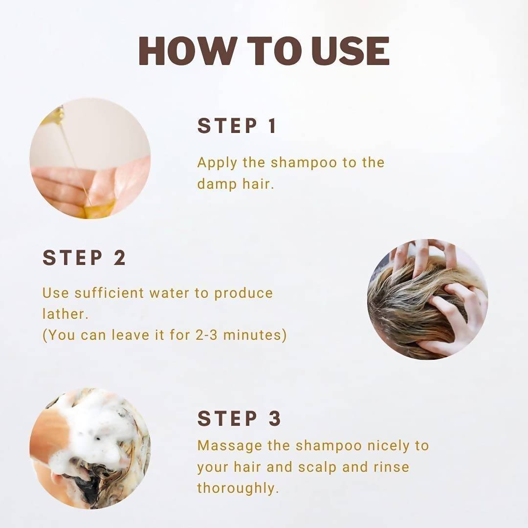 • Massage the shampoo nicely to your hair and scalp and rinse thoroughly.