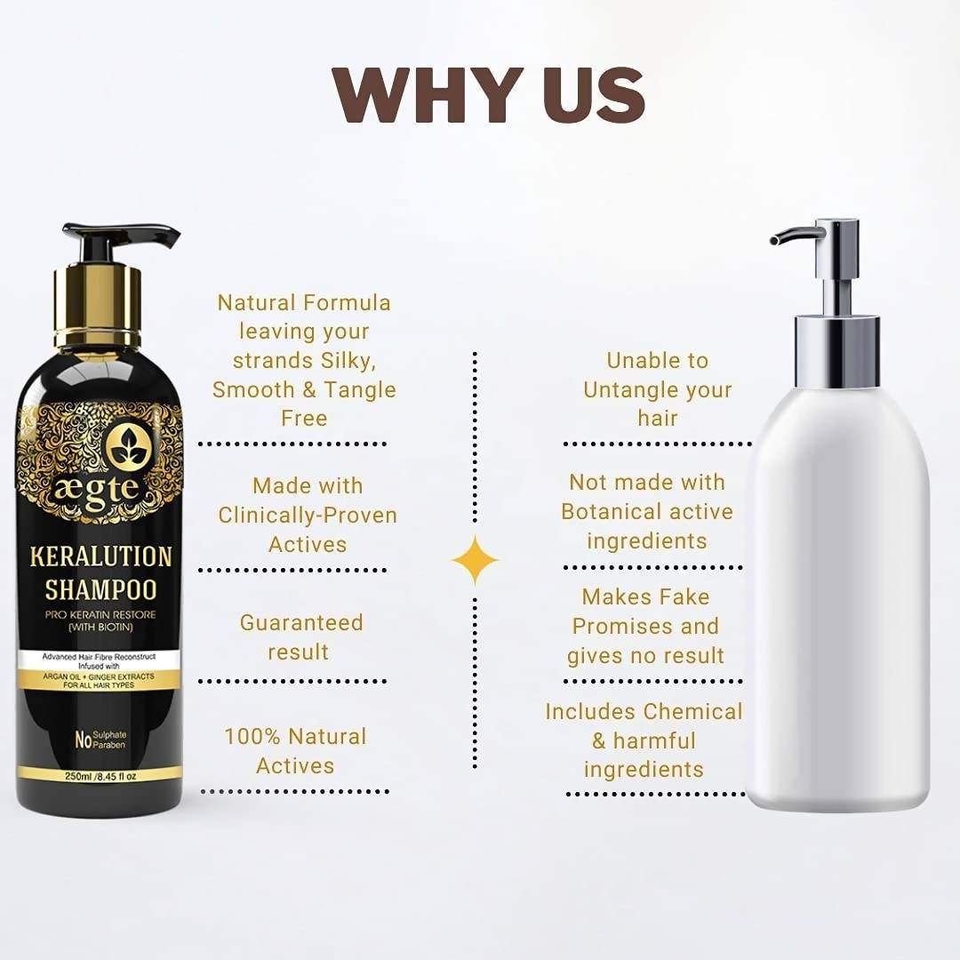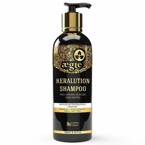 Aegte Keralution Shampoo Pro-Keratin Restore (With Biotin) Advanced Hair Fiber Reconstrut Infused with Argan Oil + Ginger Extracts For All Hair Types - 250 ml