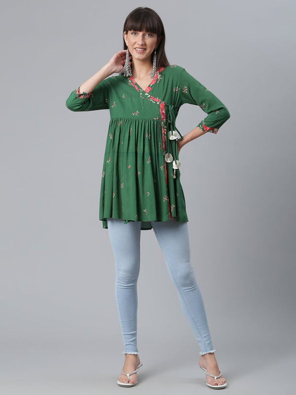 Ahalyaa Green & Pink Floral Printed Tunic - XS