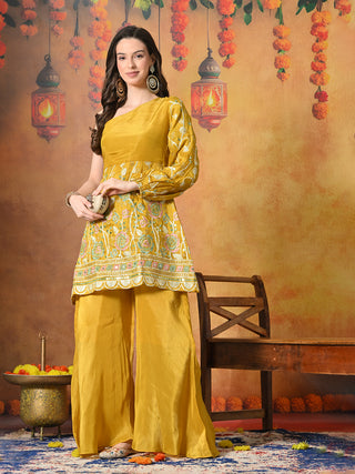 Myshka Women Rust Floral Kurta & Trousers