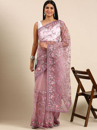 kasee Floral Embroidered Net Saree With Blouse Piece