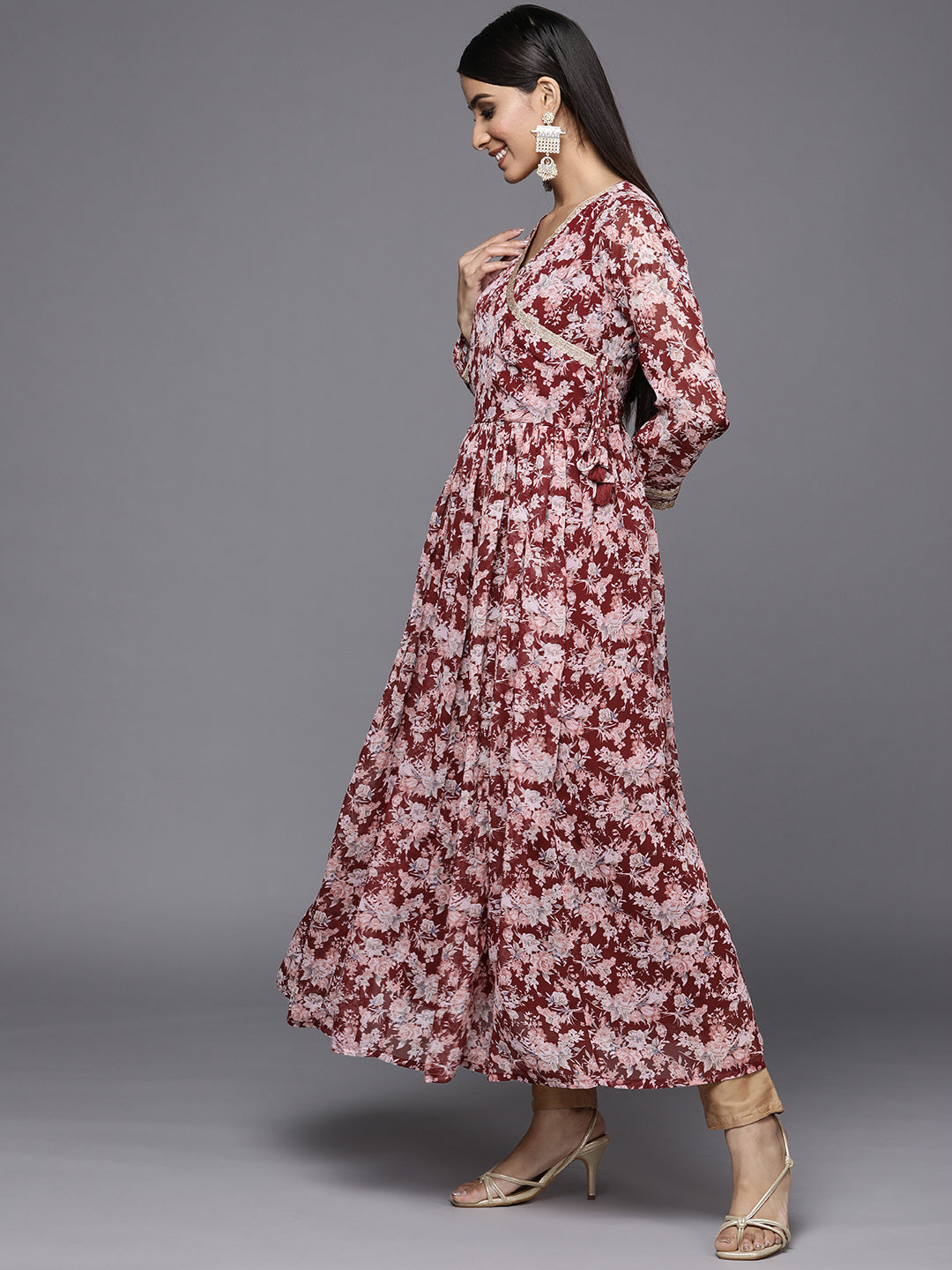 Varanga Angrakha Style Georgette Printed Anarkali Kurta Paired With Chiffon Dupatta - S