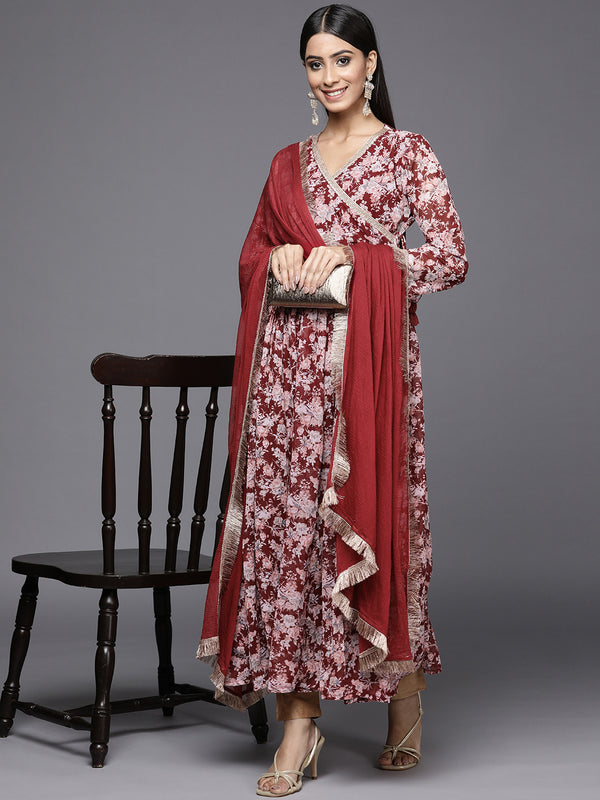 Varanga Angrakha Style Georgette Printed Anarkali Kurta Paired With Chiffon Dupatta