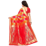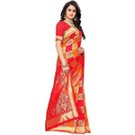 Vamika brings to you this saree which is made from Banarasi Jaquard with weaving Style Work with Red colour. Banarasi Jaquard Red Weaving Saree is a suitable amalgamation of style with the grace that is required from ethnic wear. You can wear it to casual occasions as well as make it a part of your festive wear. This saree length is 5.40 meters and it comes with a 0.80 cm separate blouse piece which is of the same shade. It is unstitched and can be altered according to your desired style and fit.