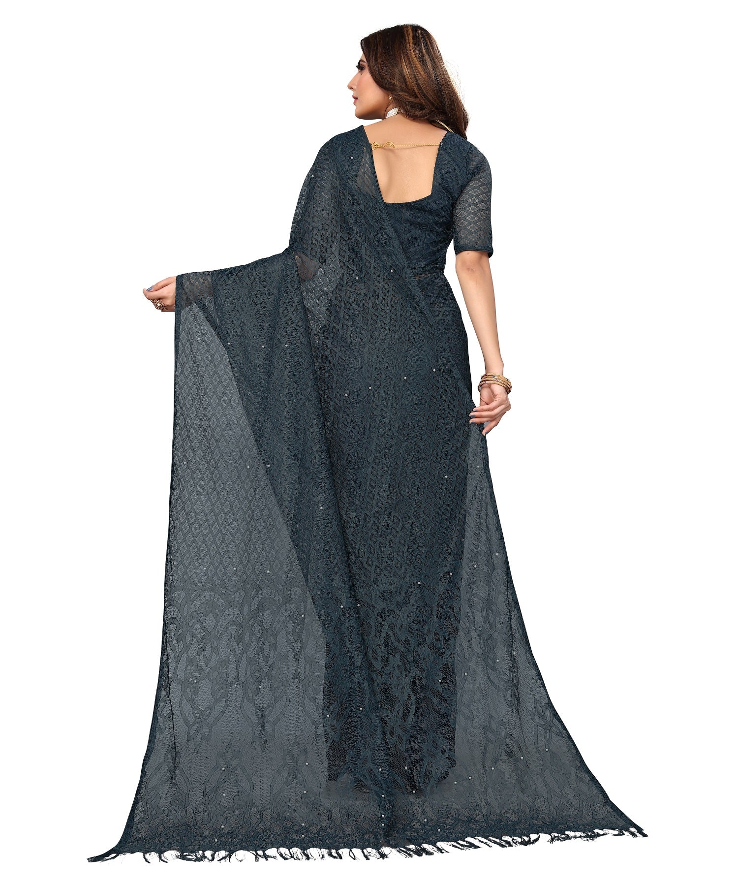 Vamika Net Brasso Rama Green Light Weight Trendy Look Bollywood Style Saree - Distacart