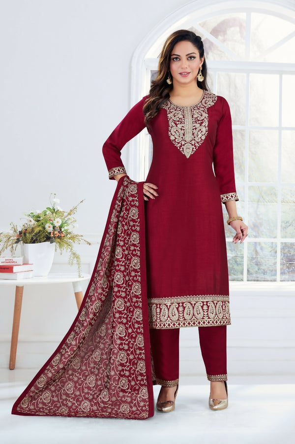 Joban Fashion Silk Maroon Color Kurta Set Top Color : Maroon Lining : Cotton Bottom Color : Maroon Dupatta Color : Maroon No of Pieces : 3 To...