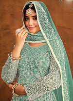 Vegaa Fashion Designer Bottel Green Net Embroidery Anarkali Suit