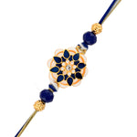 • A beautiful studded blue Rakhi with high polish. The ethnic Rakhi promises to be a comfortable wear at all times. Designed for those who celebrate tradition.