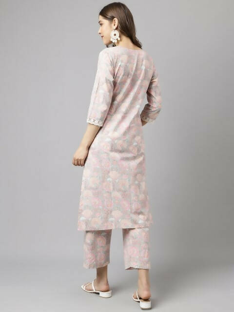 FIORRA Women's Pink Cotton A-Line Kurta Set - Distacart