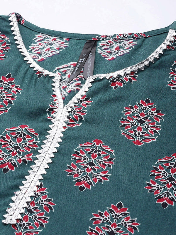 HERE&NOW Women Ethnic Motifs Printed Gotta Patti Kurta With Palazzos & With Dupatta Product Details Teal printed Kurta with Palazzos wit...
