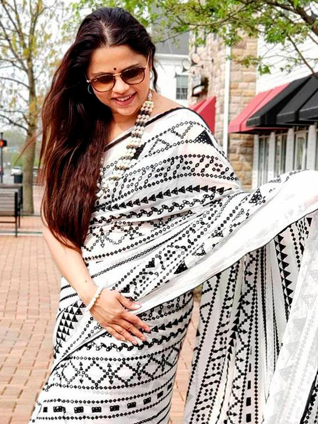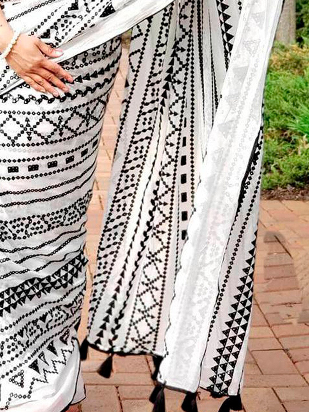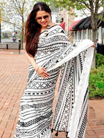 • White and black bagru saree