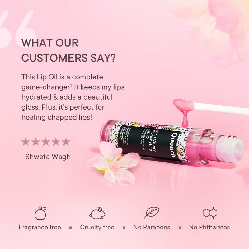Quench Illuminating Korean Tinted Lip Oil (Pink)About the Product:Love glass-like skin? Now pair it with glass-like lips! With our Mon Cherry Illum...