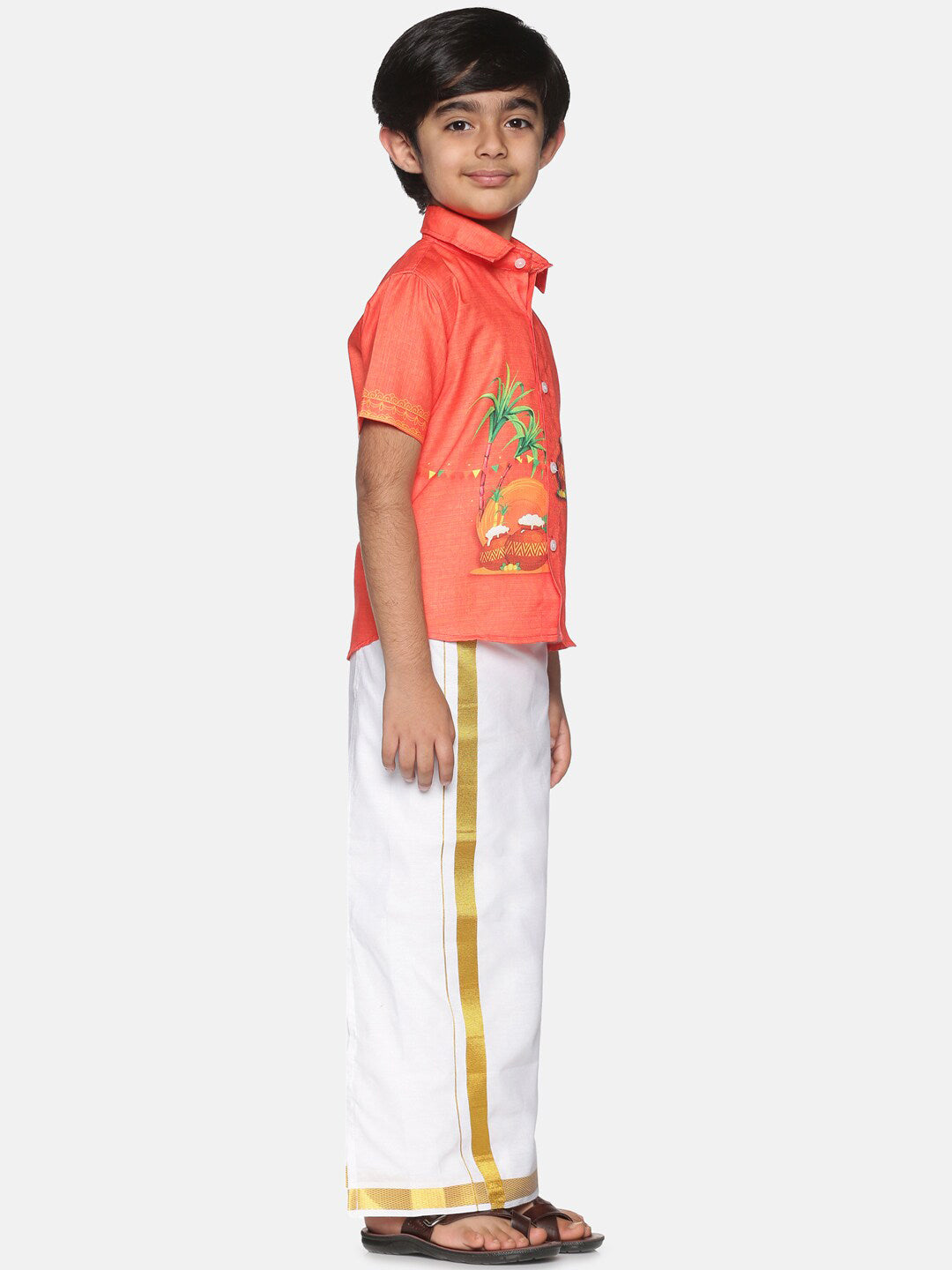 Sethukrishna Boys Orange & White Printed Shirt Product Details This Co-Ord Set consists of Shirt and Orange and white printed Shirt ,has a ...