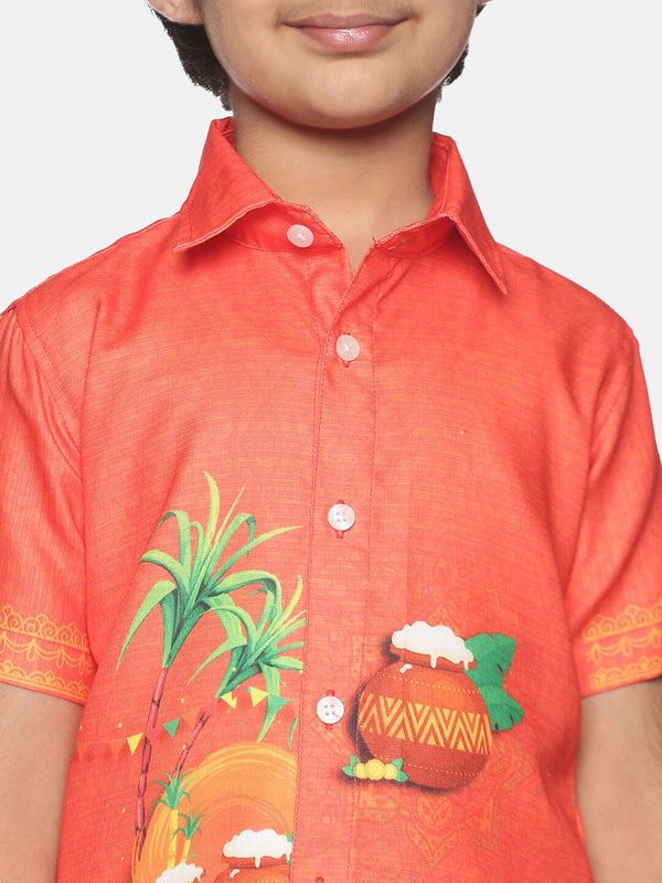 Sethukrishna Boys Orange & White Printed Shirt - 6-12M