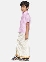 Sethukrishna Boys Pink & Off-White Pure Cotton Shirt with Dhotis