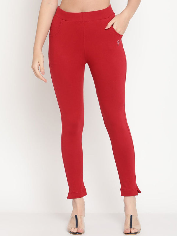 Mustard yellow & magenta solid kurti pants, each has an elasticated waistband, slip-on closure, and 2 pockets