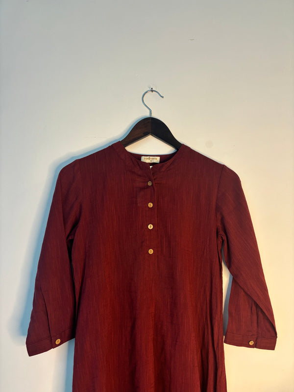 trueBrowns Maroon Slub Kurta Description Elevate your style with this timeless piece – the perfect combination of elegance and comfort. Fabricated...