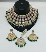 Jewel City Royal Kundan Bridal Jewelry Set - Emerald Green & Crystal Choker with Earrings & Maang Tikka Color: Multicolor Material: Alloy...