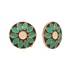 Nuyug 22K Gold Plated Circular Shaped Sea Green Enamelled Floral Motif StudsAbout the product:22 k Gold-toned circular studs, gold-plated, has enam...