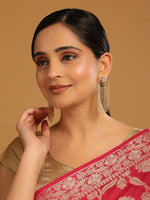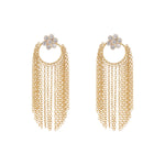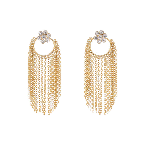 22K Gold-toned contemporary chain dangling floral stud earrings, gold-plated, has crystal stone studded details. Secured with a post and back closure.