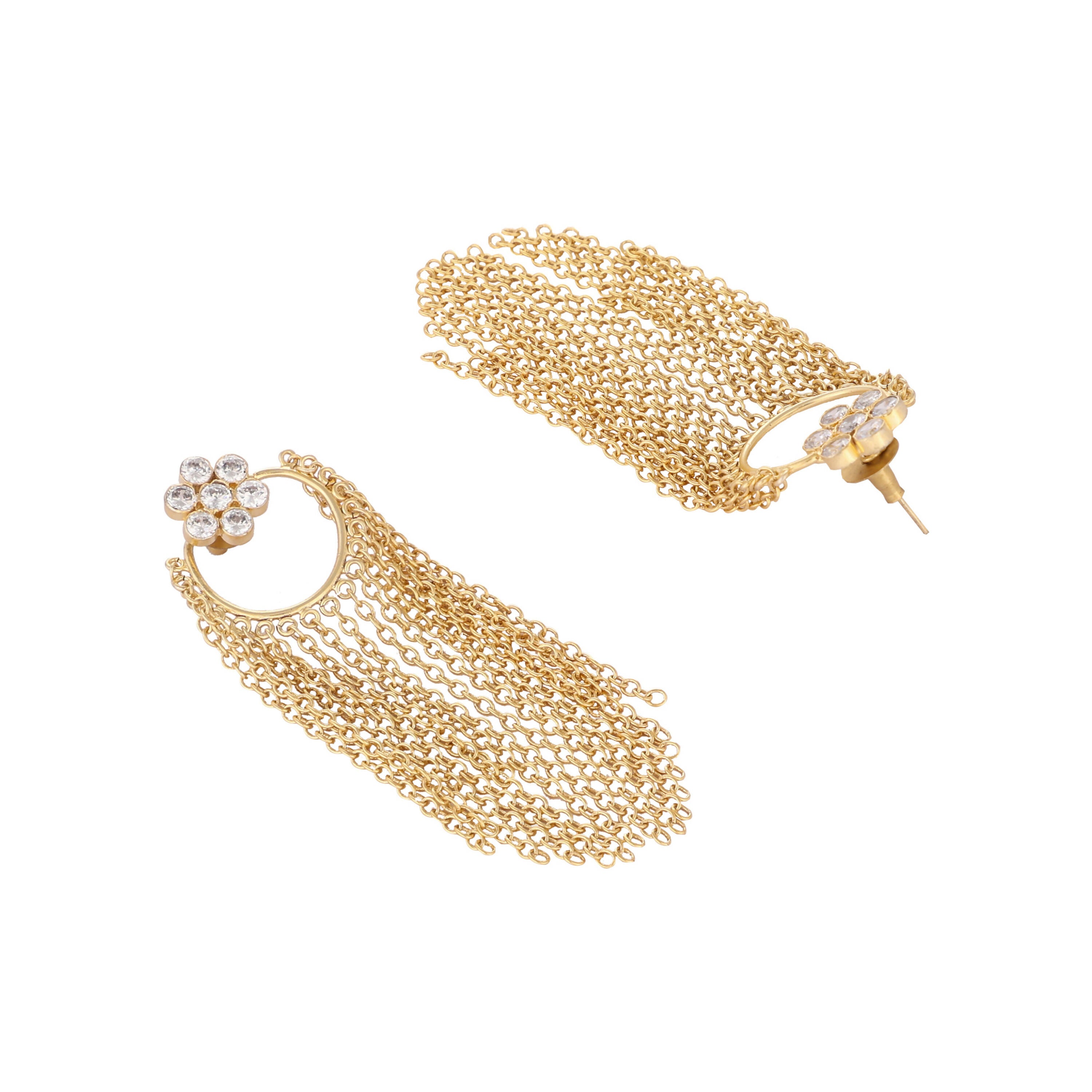 Nuyug 22K Gold Plated Crystal Studded Floral Stud Contemporary Dangler EarringsAbout the product:22K Gold-toned contemporary chain dangling floral ...