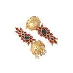 Nuyug 22K Gold-Plated Enamel & Beaded Dome Shaped Jhumka Earrings