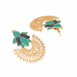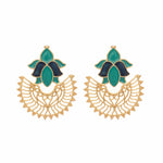 Nuyug 22K Gold Plated Turquoise Enamel Studded Indo-Western Floral Jali Statement Stud EarringsAbout the product:22 k Gold-toned indo-western flora...