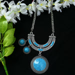 Mominos Fashion Johar Kamal Oxidised Silver-Plated Stone Work Long Necklace Handicraft Sky Blue - Distacart