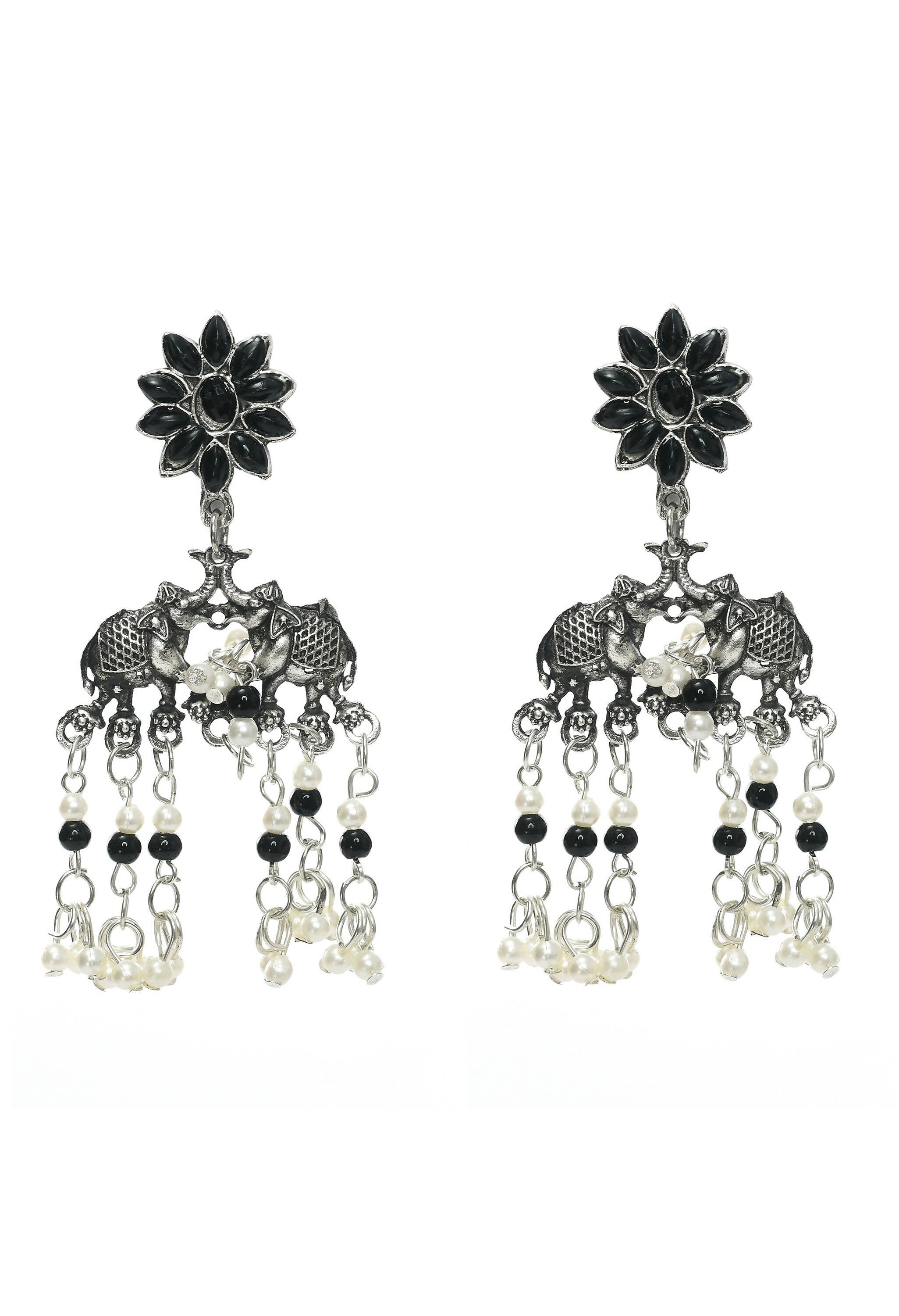 Mominos Fashion Johar Kamal Silver-Plated Brass Finish Elephant Desgin Choker For Women (Black) - Distacart