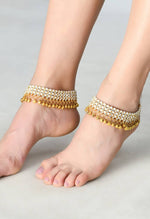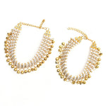 Mominos Fashion Kamal Johar Gold-Polished Pearls Anklets