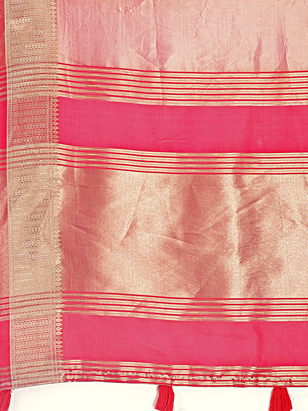 Astita Elegant Orange & Pink Organza Saree with Rich Zari Border & Pallu Tassels | Premium Partywear Saree for Women - Default Title