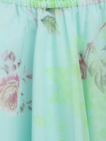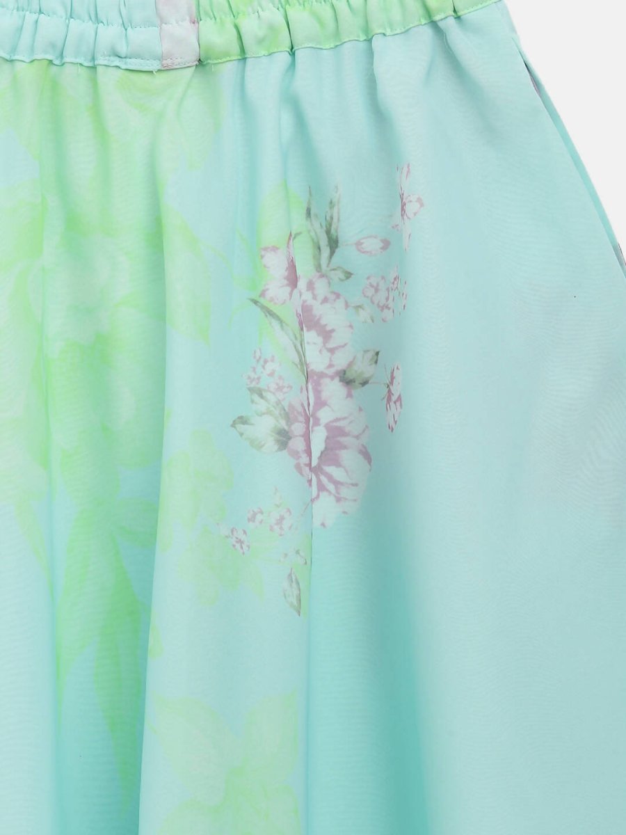 This is a cute little pastel offering by Ahalyaa for kids. This clothing set consists of Lehenga and Choli for girls. The Blue and pink printed crop top have a round neck and short sleeves. The Blue and pink floral print skirt have a slip-on closure. Wash In Cool Water, Use Mild Detergent, Do Not Bleach, reverse iron, wash dark colors separately, and do not soak.