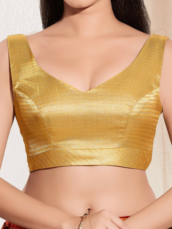 Joban Fashion Yellow Gold Mulberry Silk Padded Blouse With Sweetheart Neck Sleeveless