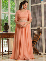 Janasya Peach Georgette Foil Print Lehenga Choli Dupatta