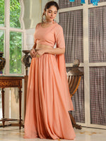 Janasya Peach Georgette Foil Print Lehenga Choli DupattaAbout the Product: Package Contains: 1 Blouse ::1 Lehenga :: 1 Dupatta Top Fabric: George...