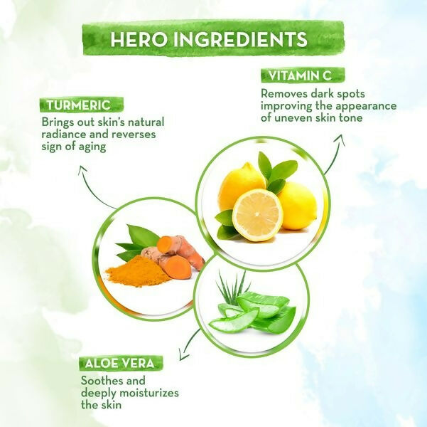 • Turmeric: With anti-inflammatory and antiseptic properties, Turmeric protects the skin naturally. It revives the skin by bringing out its natural glow while delaying premature aging.
