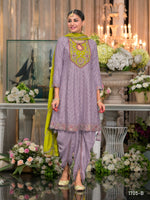 Aarshi Fashions Purple Dhoti Wedding SuitProduct Details Package Details : 1 Top::1 Bottom::1 Dupatta Kameez Length : 42 Color: Purple Fabric: ...