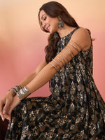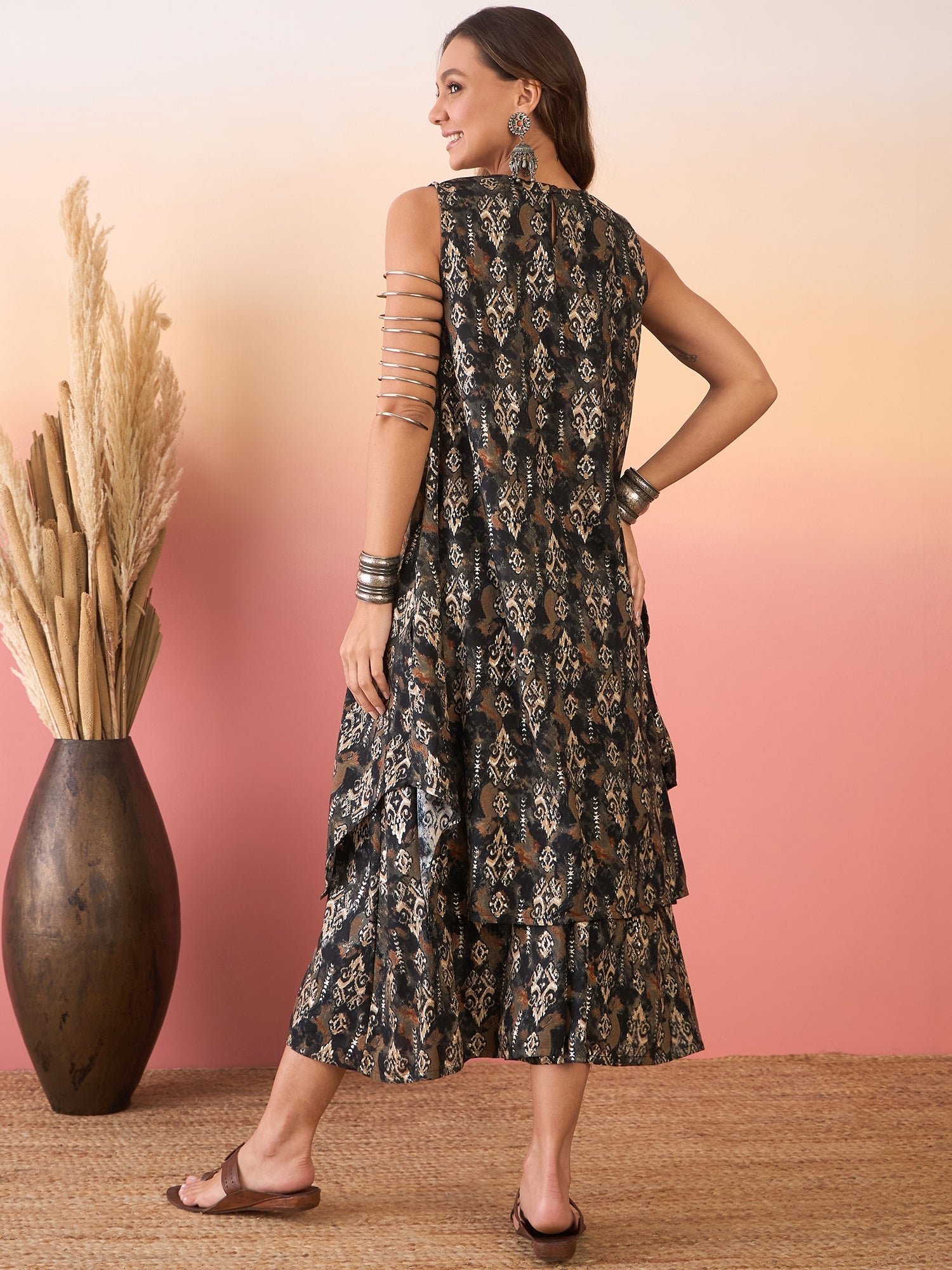 InWeave Black Ikkat Print Foil Round Neck Palazzo Set - S