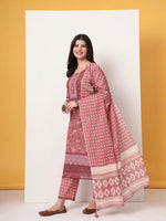 Yufta Cotton Pink Kurta Dupatta Set With Lace Detailing