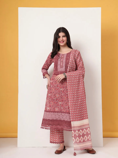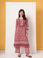 Yufta Cotton Pink Kurta Dupatta Set With Lace Detailing Product Details  Pink Floral Straight kurta Trouser Dupatta Set, Kurta Design Lace_Work Sh...