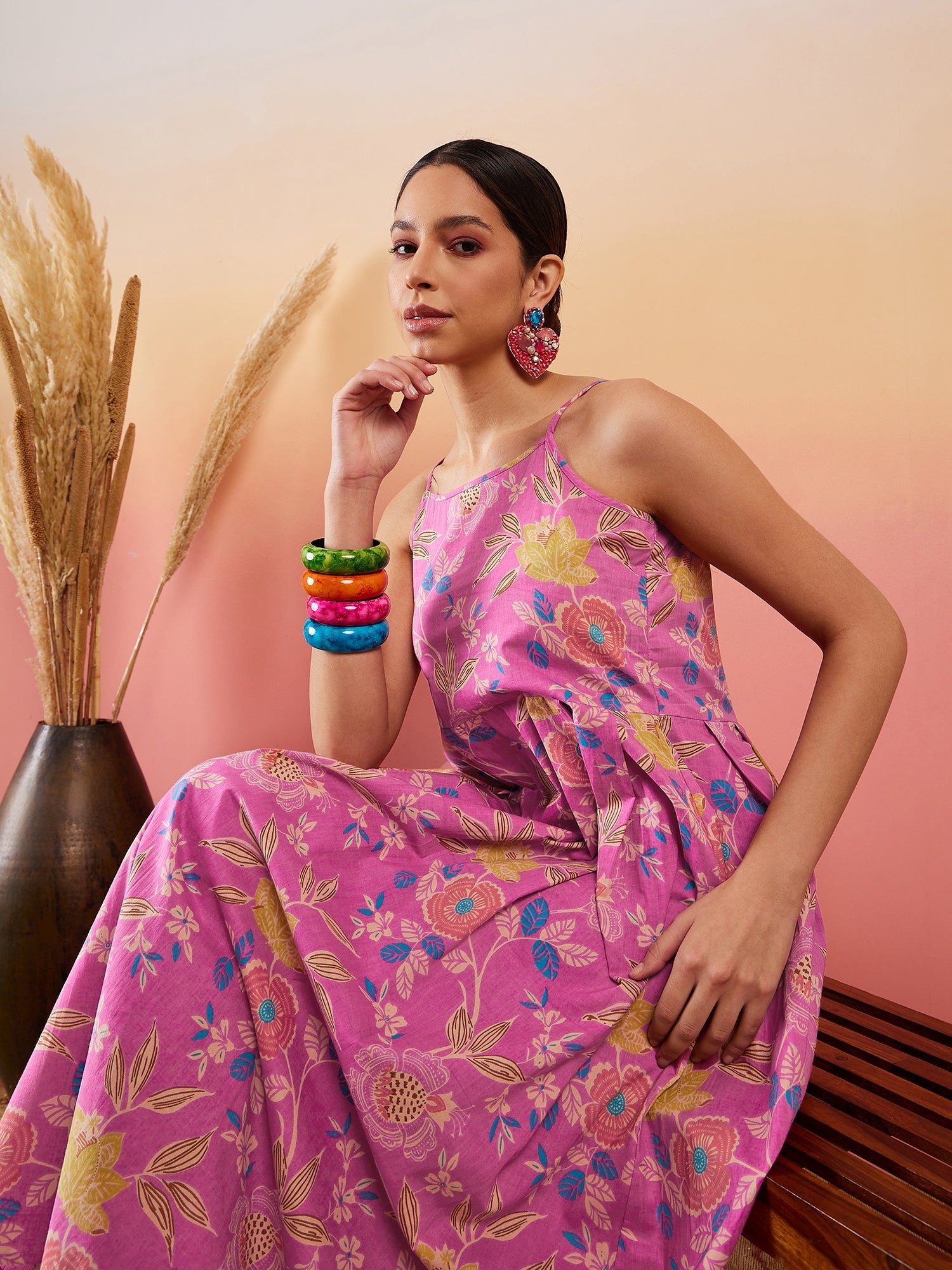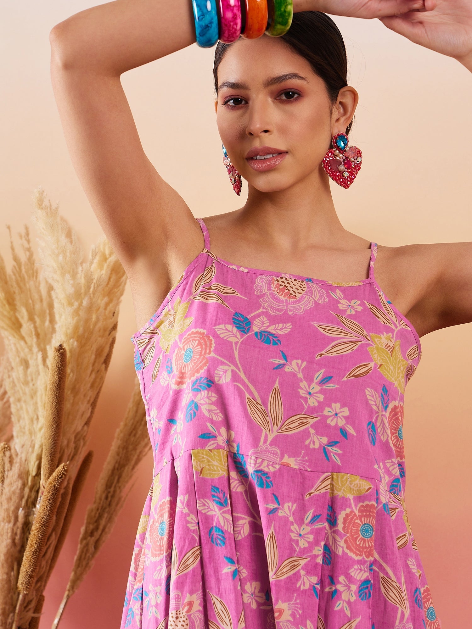 InWeave Dull Pink Floral Print Strappy Printed Palazzo SetGet a perfect look for any traditional occasion with this kurta and Palazzo set from InWe...