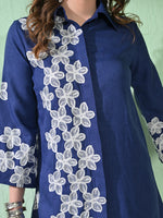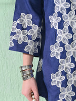 Myshka Women's Floral Embroidered Navy Tunic with Trouser