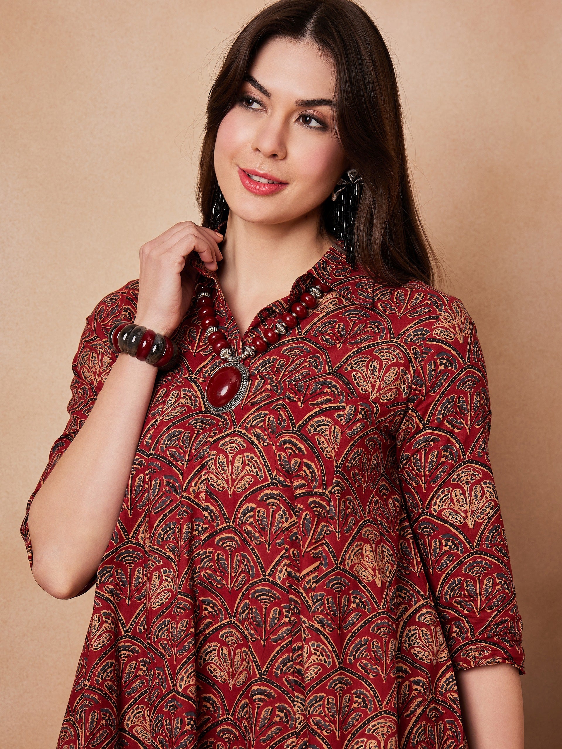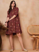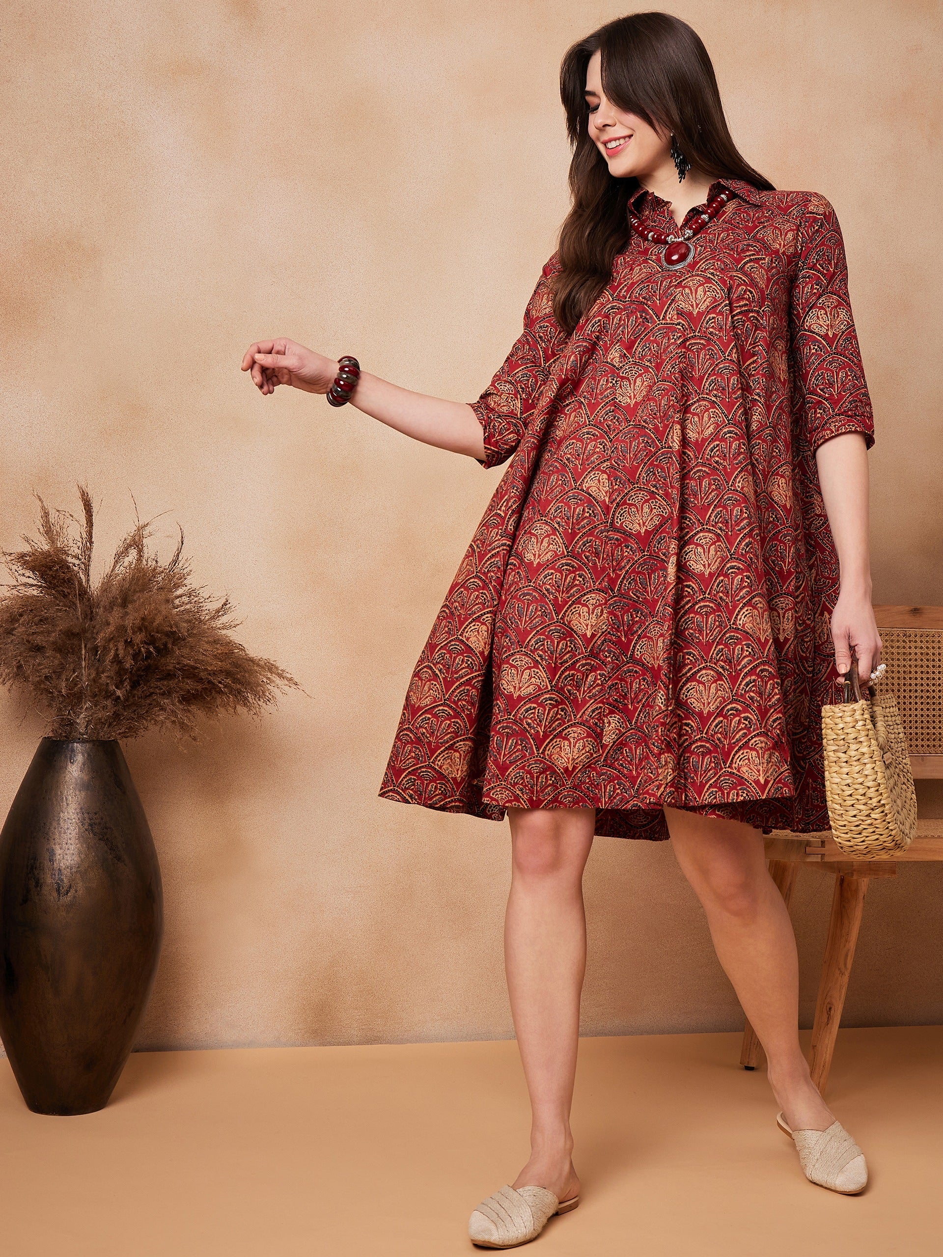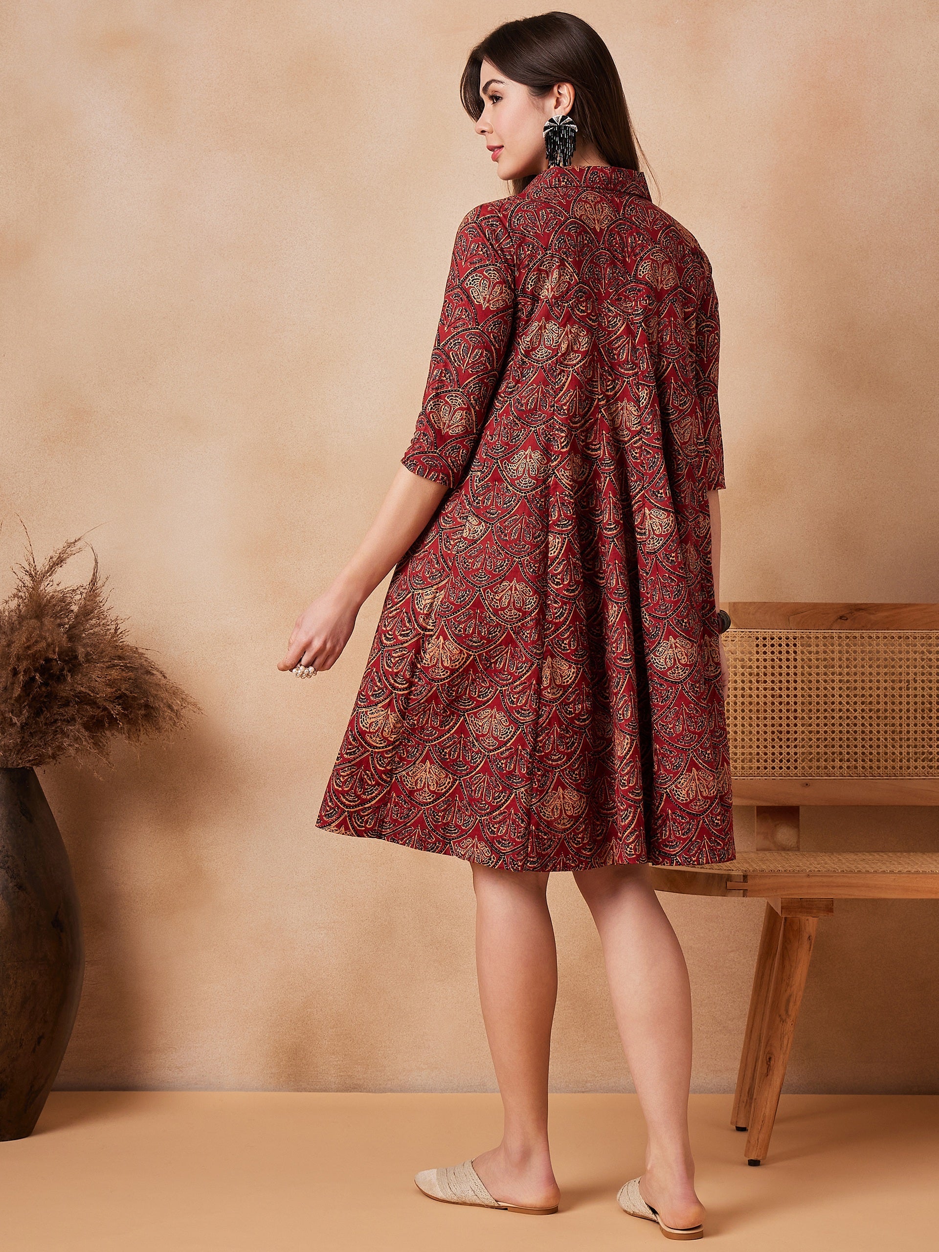 InWeave Rust Scales Printed Flared Dress - Distacart