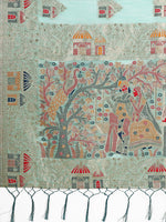 Aanika Women Sky Blue Linen Cotton Saree With UnStiched Blouse