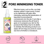 Refreshing and Cooling Pore Minimising Facial Toner Effective toners, such as this, can help minimize visible and open pores. It does so by tightening cell gaps after cleansing, and reducing the penetration of impurities and environmental contaminants into the skin. It can even protect and remove chlorine and minerals present in tap water. It acts as a moisturizer, balances the pH level, and goes on to prepare your skin for the products that follow. Due to its ability to minimize; the following products you apply will not clog your pores and cause any form of irritation or breakouts. The go-to toner for healthy, glowing, non-sensitive skin.