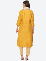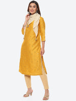 Biba Women Yellow Embellished Mirror Work Straight Fit Art Silk Kurta with Dupatta - S